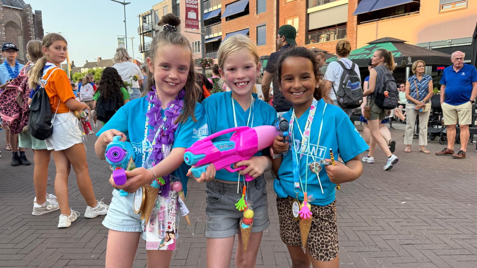 Dat er veel plezier is bevestigen Babet (7), Romy (8) en Sadie (8) van Basisschool D’n Overkant. Bijna alle dagen liepen zij samen. “We doen mee voor de gezelligheid en we vinden het leuk om sportief bezig te zijn”, vertelt Sadie. De meiden hebben een oplossing bedacht voor de warmte. “We hebben vandaag waterpistolen meegenomen om elkaar en andere kinderen nat te spuiten. Daar hebben we erg om gelachen”, vertelt Babet.