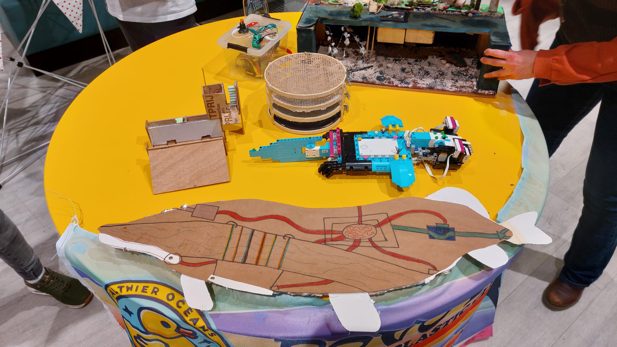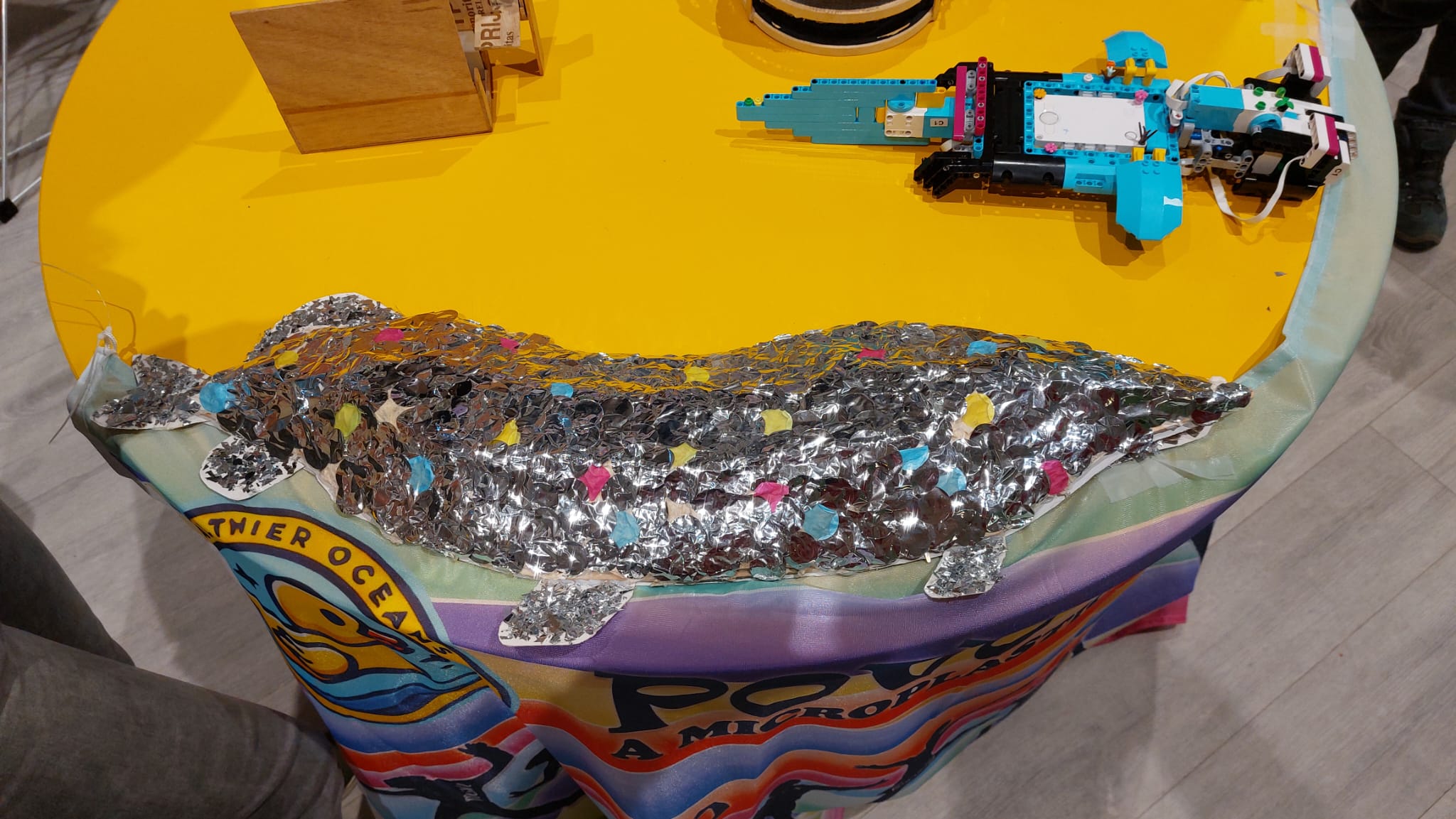 Op de basisschool hebben de leerlingen van het team een hoop materialen uitgestald om te laten zien wat het project allemaal inhoudt. Met behulp van een echte Lego-vis, een wand met informatie en een prototype legt Maxime – een van de leerlingen van basisschool De Aanloop – uit wat de wedstrijd precies inhield. “In de First Lego League moet je door middel van een robot een aantal missies op een speelveld voltooien.” Daarnaast gaat het team aan de slag met een innovatieproject wat met het overkoepelende thema te maken heeft. “Het thema was dit jaar ‘Submerged‘, waardoor de meeste innovatieprojecten met water te maken had.”
