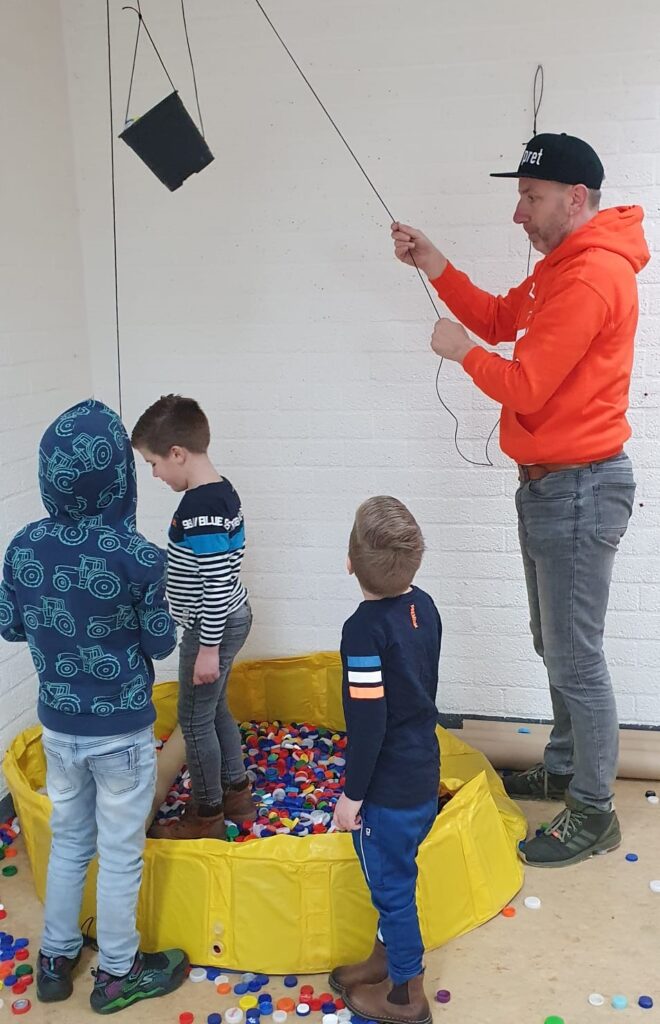 Afgelopen zaterdag konden kinderen voor het eerst een kijkje nemen in het doppenwalhalla, wat gevestigd zit in Kaai Duurzaam. “Ze wilden niet meer weg. De Dagobert Duckkluis en doppendouche waren favoriet. Er werden ook mooie mozaïeken met gebruikte doppen gemaakt en sommige kinderen bouwden er politieagentjes van. Enorm creatief!”