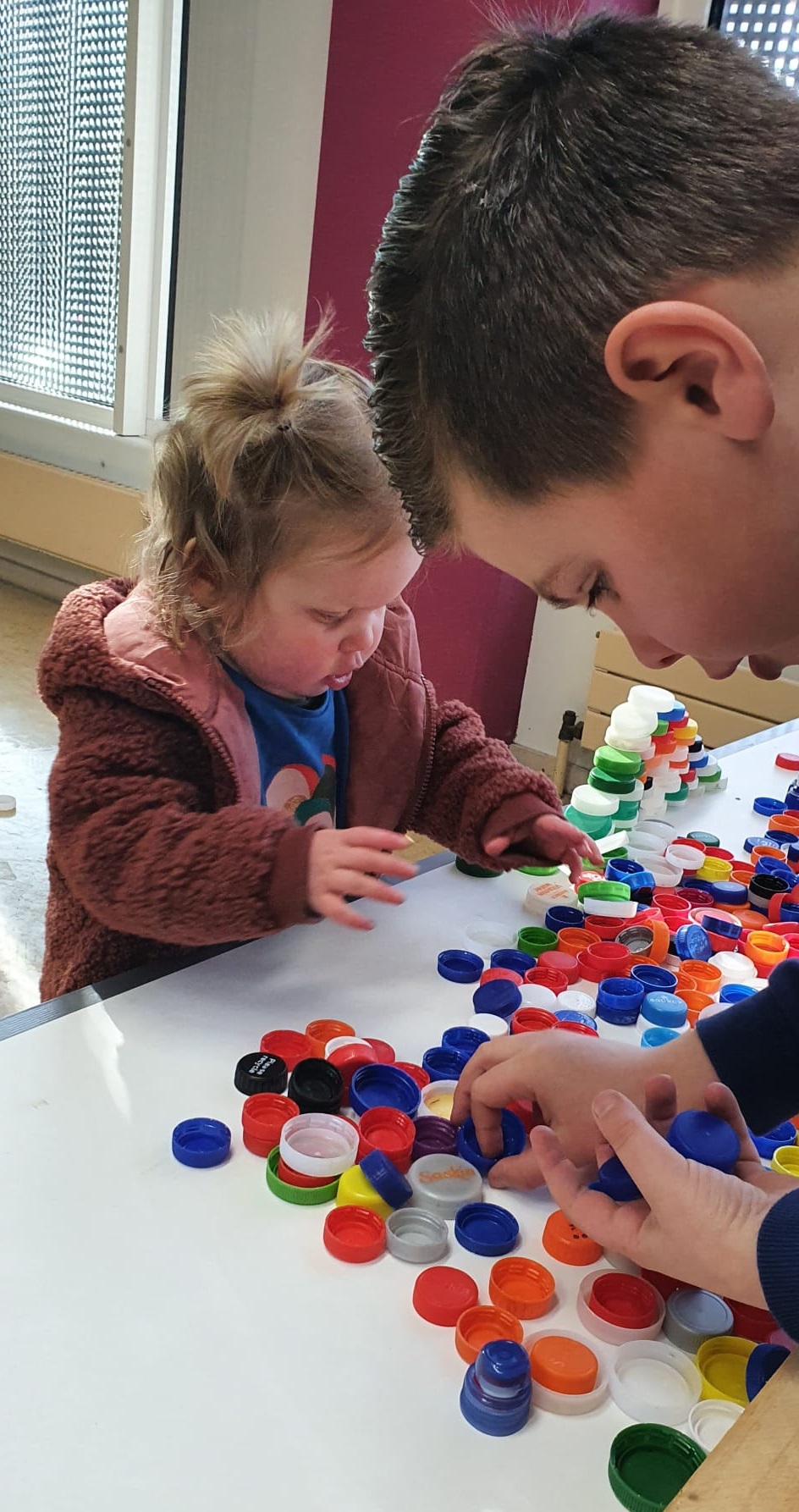 Afgelopen zaterdag konden kinderen voor het eerst een kijkje nemen in het doppenwalhalla, wat gevestigd zit in Kaai Duurzaam. “Ze wilden niet meer weg. De Dagobert Duckkluis en doppendouche waren favoriet. Er werden ook mooie mozaïeken met gebruikte doppen gemaakt en sommige kinderen bouwden er politieagentjes van. Enorm creatief!”