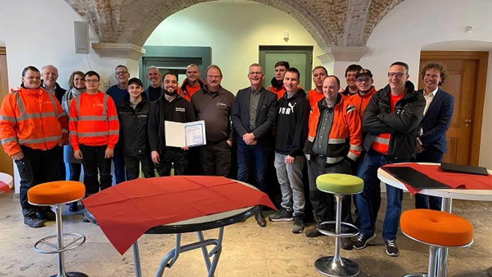 Trotse gezichten en grote glimlachen bij de 11 mannen die een Certificaat Garantiebanen kregen van de gemeente Roosendaal. Wethouder René van Ginderen heeft de certificaten woensdagmiddag uitgereikt. De 11 deelnemers hebben 2 jaar lang allerlei opleidingen en trainingen gevolgd. Ook hebben ze meegewerkt op meerdere afdelingen van de gemeente om ervaring op te doen. Het is de bedoeling dat de deelnemers hierdoor makkelijker een baan kunnen vinden buiten de gemeente.