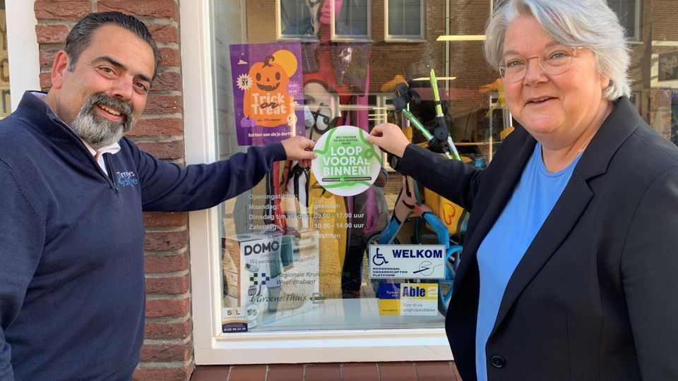 Ondernemer Rolf Timmers van Timmers MediCare houdt, vanwege de hoge energiekosten en de dalende temperatuur, zijn deur dicht. Zo blijft de warmte namelijk binnen. Door deze duurzame aanpak én om andere ondernemers een steuntje in de rug te geven, kreeg hij een speciale sticker van wethouder Klaar Koenraad.