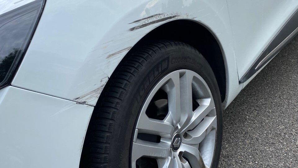 De klapband is weer vervangen, maar de auto heeft nog flink wat blikschade. “Ik kan wel huilen. Mijn auto zit vol scheuren en krassen. Het wordt een duur grapje.” De Moor is bang dat de bestuurder ermee weg komt.