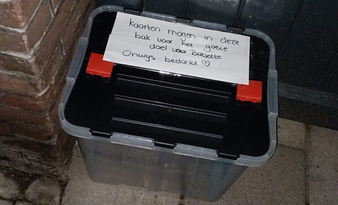 Inmiddels heeft ze zelfs een box voor de deur gezet, speciaal voor de kaarten. “Zo kunnen mensen toch wat achterlaten, als ik overdag zelf aan het werk ben.” En de eerste lichting was al hoopgevend. “Daar kan Babette wel even mee vooruit. Ik ga ze binnenkort trouwens pas bezorgen, als ik een hele voorraad heb opgespaard. Dan wordt het een grote verrassing.”