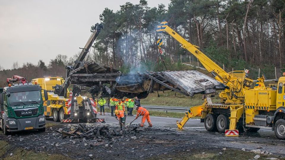 Schoonmaken snelweg na uitbranden vrachtwagen immense klus