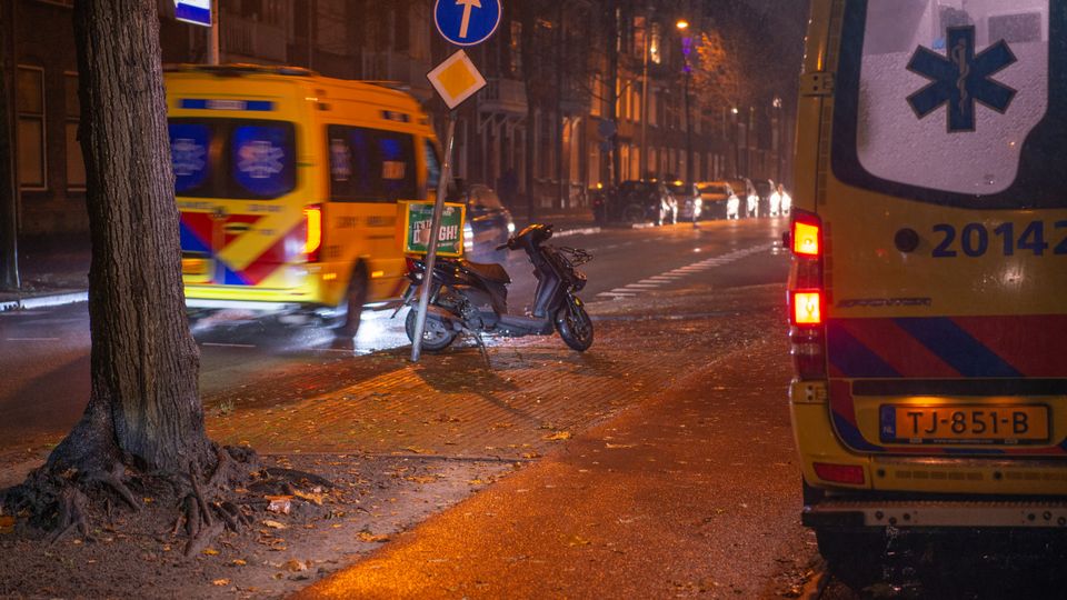 Scooterrijder door ambulancepersoneel verzorgd na eenzijdig ongeval in Bergen op Zoom