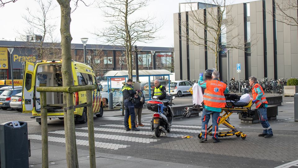 Scooterrijder gaat onderuit na aanrijding op zebrapad bij winkelcentrum
