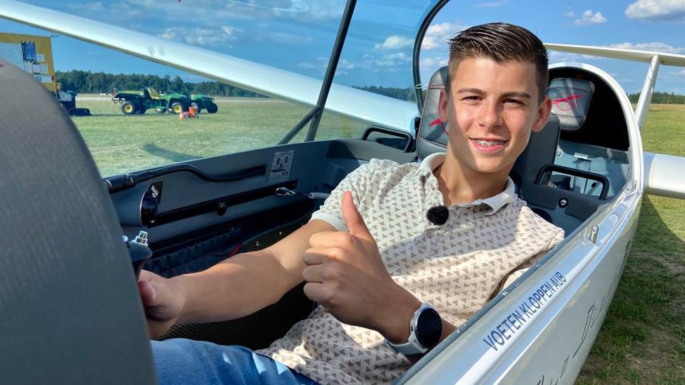 Senna (14) vliegt solo in een zweefvliegtuig: ‘Later word ik jachtvlieger’