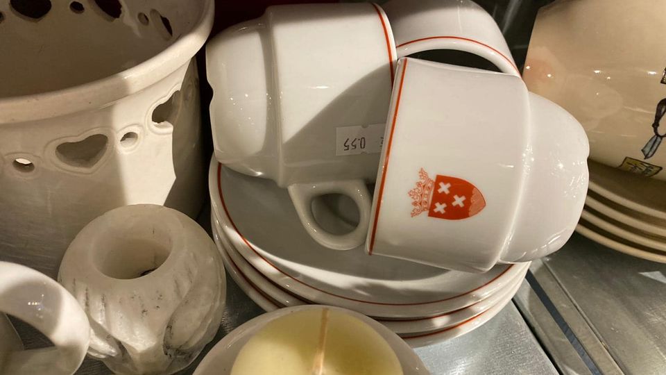 Serviesdelen van het Bergs stadhuis zijn opgedoken bij de Kringloopwinkel in Bergen op Zoom. De kop en schoteltjes en mokken met het rode Bergse gemeentewapen liggen voor 55 cent te koop in de winkelrekken. Het gaat om het oude, officiële gemeenteservies. Bij de gemeente was zaterdag niemand bereikbaar voor commentaar.