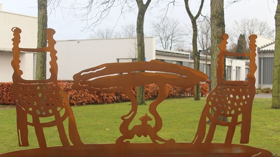 De aanleiding voor de onthulling van de twee beelden is omdat S&L Zorg 30 jaar bestaat. De beelden zijn ontworpen door bewoners Jozé Theuns en Jean-Paul Hopmans. De kunstwerken bestaan beiden uit een tafel met twee stoelen. De betekenis van de beelden staat voor de gastvrijheid die S&L Zorg bied.
