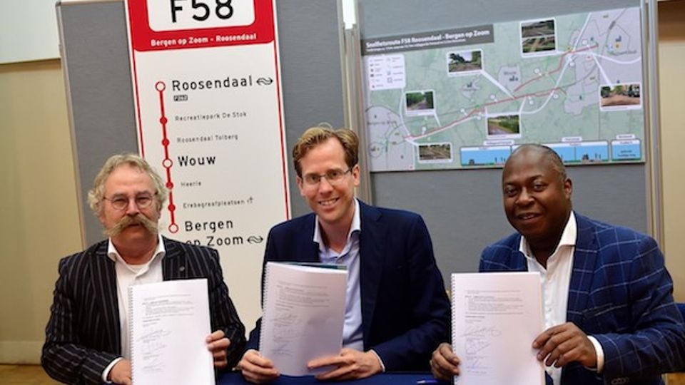 De aanleg van de snelfietsroute F58 tussen Roosendaal en Bergen op Zoom gaat door. Woensdag hebben de gemeenten en de provincie een overeenkomst getekend om het fietspad aan te leggen.