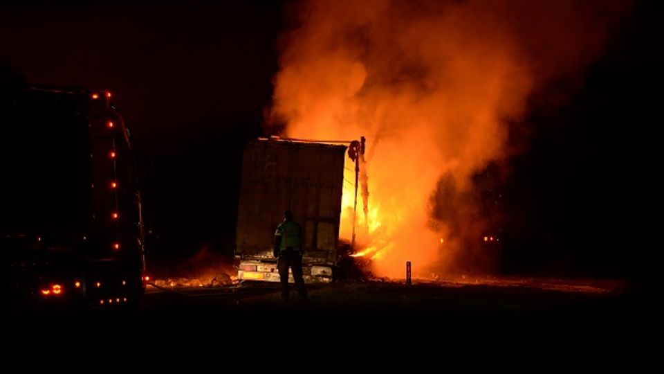 Op de A4 tussen Bergen op Zoom en de afrit Tholen/Halsteren is een oplegger vol met frituurvet donderdagnacht in brand gevlogen.