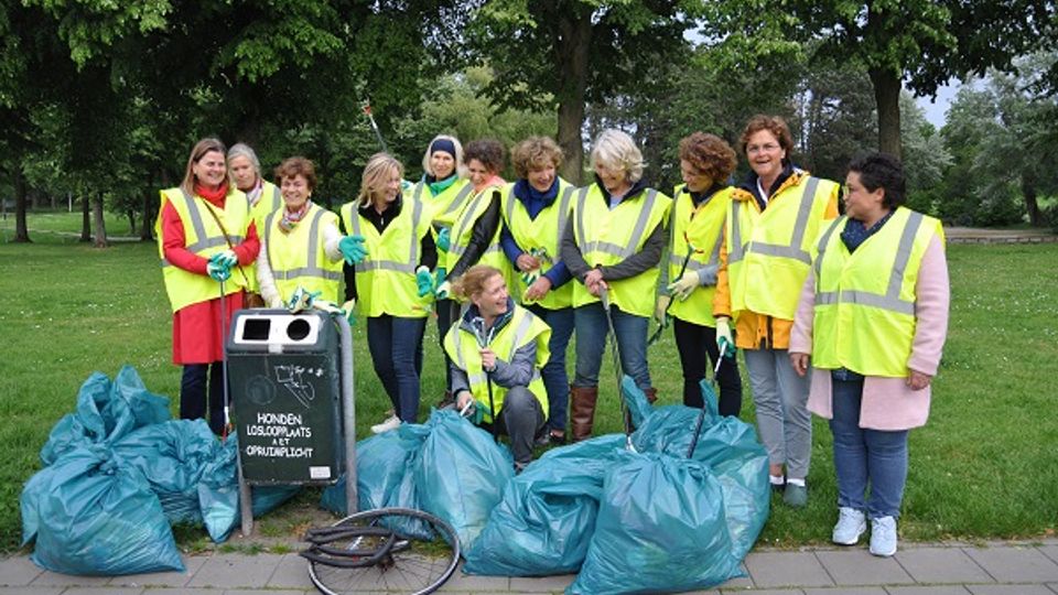 Serviceclub Soroptimisten Bergen op Zoom heeft dinsdag 21 mei een opruimactie gehouden aan de Vijverberg.