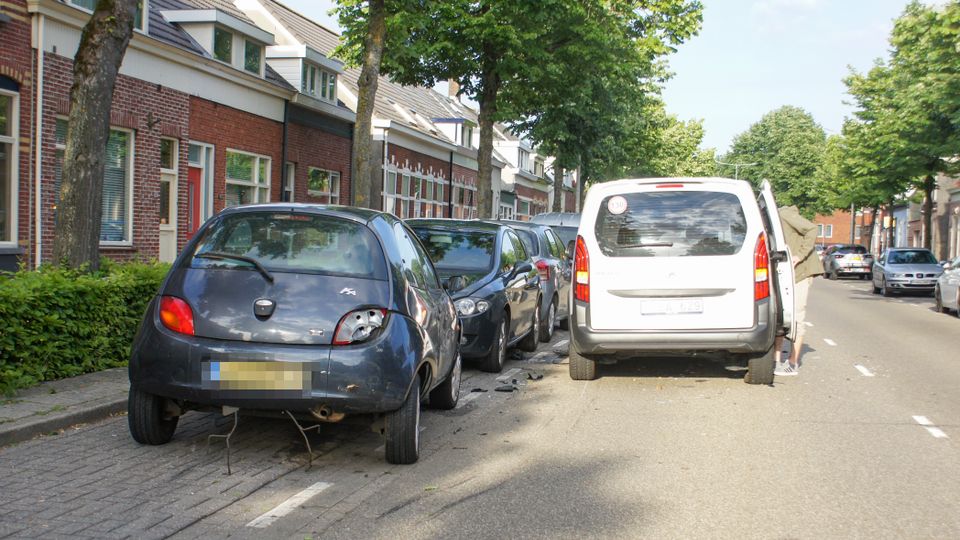 Een bestuurder uit Litouwen heeft drie geparkeerde auto’s en een medeweggebruiker geraakt na het de verkeerde weghelft oprijden. Het is bij materiële schade gebleven.
