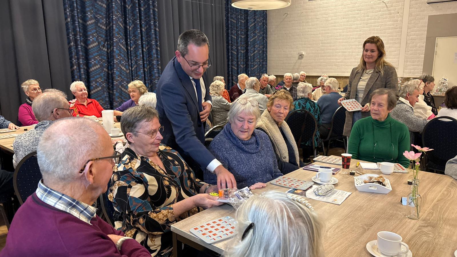 Ook burgemeester Steven Adriaansen is bij de bijzondere bingomiddag aanwezig. Hij legt uit dat de gemeente de landelijke actie Denk Vooruit lokaal wil vertalen. Daarom is besloten een bingo te organiseren. “Met prijzen voor een noodpakket, om op die manier op een leuke manier het gesprek aan te gaan”, verklaart hij.