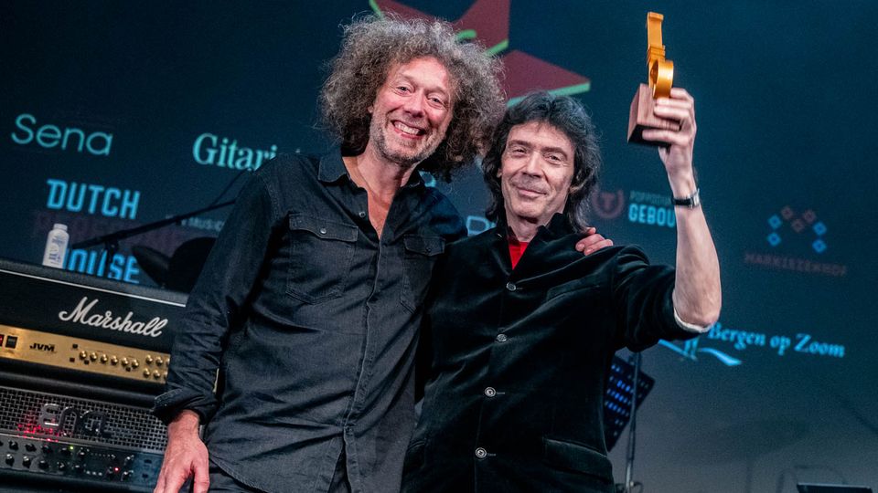 Trots en vereerd voelt de Britse Genesis-gitarist Steve Hackett zich, na het ontvangen van de Sena European Guitar Award. De Nederlandse gitarist Leendert Haaksma overhandigde de prijs donderdagavond aan de Engelse gitaarlegende.