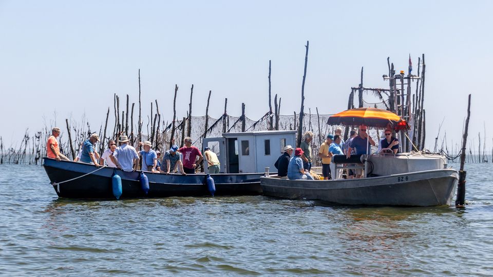 De excursies naar de weren op de Oosterschelde gaan nog de hele maand juli door. (foto: Stichting Behoud Weervisserij)