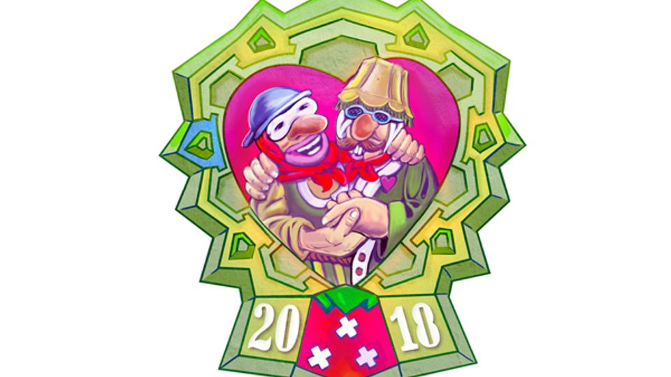 Het hart komt als beeld twee keer tevoorschijn. Het grote hart in het midden waarop twee ‘dweilen’ staan, die elkaar goed vasthouden en de creatieve verscheidenheid en traditie laten zien. Op een van deze dweilen zit ook een hart op het dweilpak. Verder is een artistieke verbeelding van de oude vestingmuren van Bergen op Zoom te herkennen. Het toont de bescherming en beslotenheid van de stad, maar vooral ook hoe de Bergenaar de Vastenavend in het hart sluit. Traditiegetrouw zijn ook het omgedraaide stadswapen en het jaartal 2018 terug te vinden.