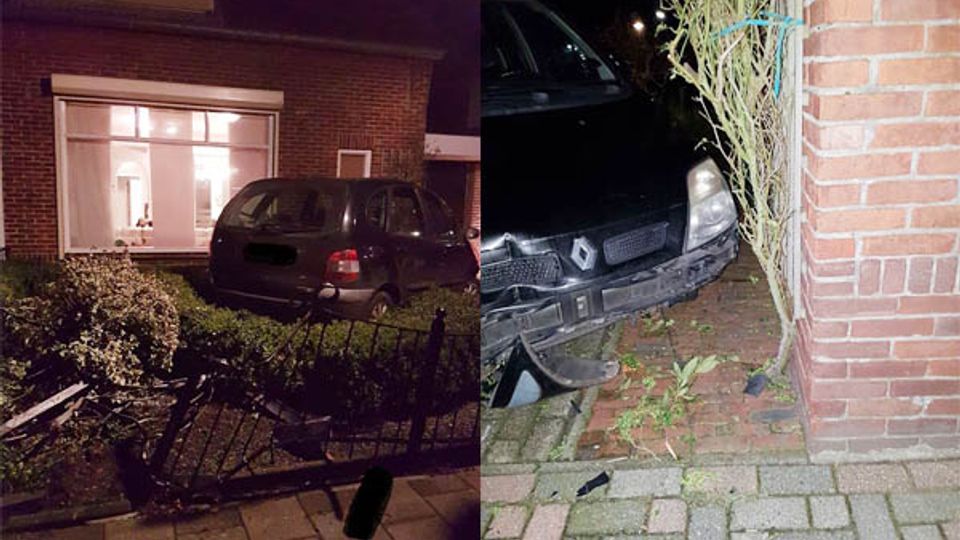 Stomdronken man rijdt voortuin binnen in Huijbergen