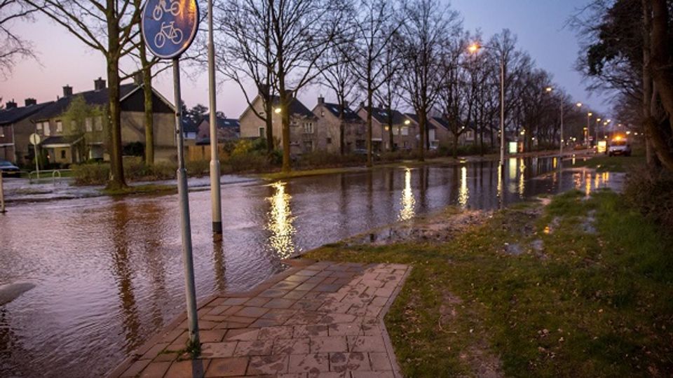 Door een waterleidingbreuk stonden zaterdagochtend meerdere straten in de omgeving van de Strausslaan in Roosendaal onder water.