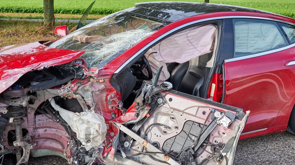 Tesla knalt bij gevaarlijke inhaalpoging op tegenligger