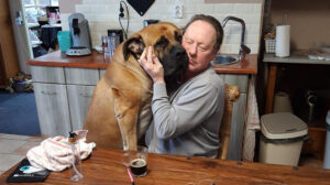 Al sinds september verblijft Konan, een Boerboel van bijna twee jaar oud, bij Theo. “Ik train hem en help hem minder angstig te worden. Zijn eigenaren konden hem vorig jaar niet meer handelen, dus toen is Konan bij mij gekomen. Hij is in die maanden gigantisch gegroeid. Niet zo gek, want ik maak lange wandelingen met hem. Een prachtig beest.”