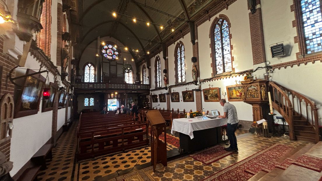 Terwijl een kerkkoor ‘Hallelujah’ inzet, vertelt Frank van der Linden, bouwadviseur van Bisdom Breda, waarom deze kerk zo bijzonder is. “De veertien schilderijen die de lijdensweg van Jezus Christus, van zijn veroordeling tot zijn graflegging verbeelden, springen natuurlijk in het oog. Maar voor mij als bouwkundige zijn de staalconstructies veel interessanter. Kijk eens omhoog, daar loopt van raam tot raam een ringanker die de kerk als een staalkorset bijeenhoudt”, beschrijft hij enthousiast.
