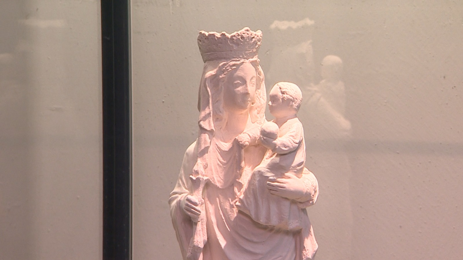 Een donkergrijs Mariabeeld is door een computer gemaakt. “In 3D en aan de hand van foto’s van het beeld dat verloren is gegaan aan de Wouwseweg. Van de foto’s is deze reconstructie gemaakt. Heel bijzonder omdat bij de gast-Maria’s te hebben.” Het beeld zal niet terugkeren. Wel is er een actie begonnen om op de plek waar het beeld stond een nieuw kunstwerk neer te zetten wat verbondenheid moet uitstralen tussen de moslimgemeenschap en de christenen. “De sokkel waar het beeld op stond blijft leeg, en staat symbool voor het beeld dat hier in de vitrine staat.”