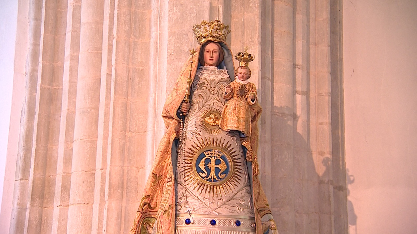 Dan is er nog een groot, blinkend beeld vol met goudtinten. “Hier ben ik ontzettend trots op”, zegt de pastoor goedkeurend. “Dit beeld hebben we in bruikleen gekregen van de gesloten Franciscuskerk uit Merksem.” De mantel van deze Maria is helemaal van goudbrokaat en met daarop medaillons. “In de rand is het hele Weesgegroet geborduurd.” Het beeld heeft meerdere mantels. Dat maakt dat ze voor iedere tijd van het jaar een mantel heeft. “Ik vind het heel bijzonder dat wij een beeld in blijvende bruikleen hebben vanuit Antwerpen in onze stad, omdat ze weten dat wij Maria zo’n warm hart toedragen.”