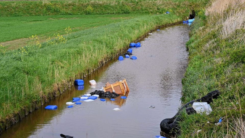 Tientallen vaten drugsafval gedumpt in sloot bij Hoeven