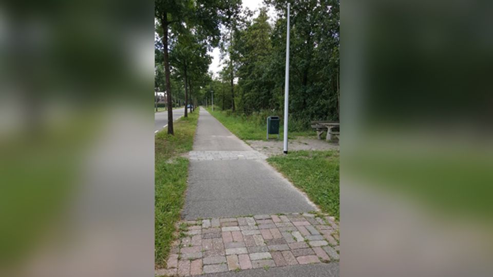De verlichting langs de Huijbergseweg werkt nog niet. Er staan nu alleen palen. De slimme fietsverlichting wordt volgens de gemeente voor de winter in gebruik genomen.