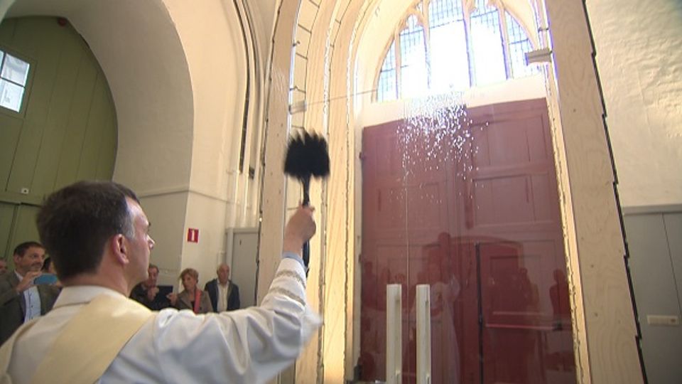 Het tochtportaal van de Gertrudiskerk in Bergen op Zoom is in gebruik genomen. Zaterdagmiddag openden wethouder Annette Stinenbosch en pastoor Paul Verbeek de deuren.
