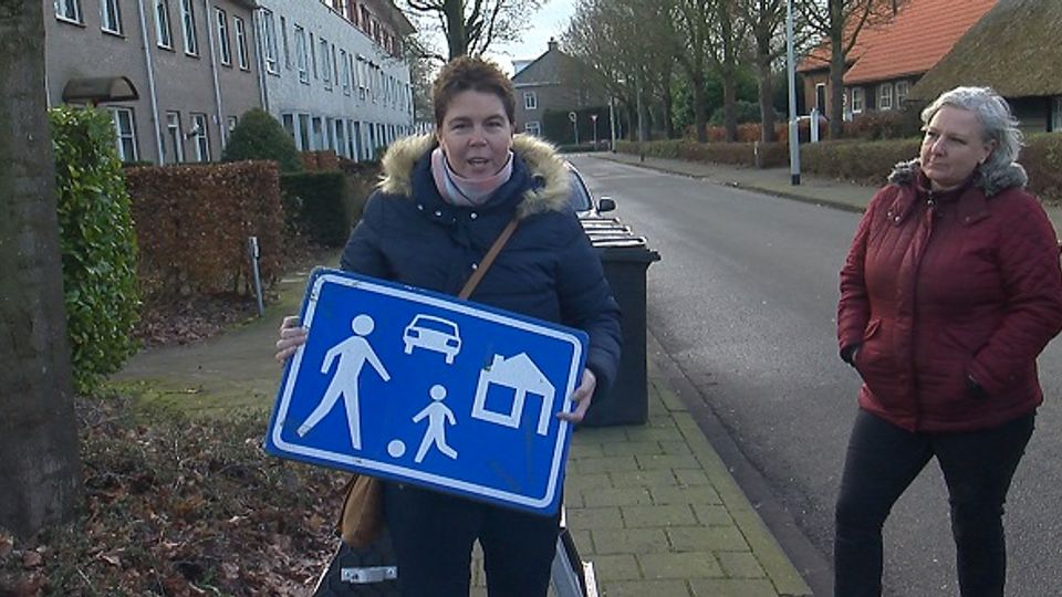 Wethouder Inge Raaijmakers toonde het gerecyclede verkeersbord op de kruising van de Dragonberg en de Damastberg. Het oude bord was aan vervanging toe, omdat het helemaal was omgebogen. “We zijn aan het kijken hoe we steeds meer met herbruikbaar materiaal kunnen werken,” zegt Raaijmakers. Op deze manier wordt er op een duurzame manier omgegaan met het milieu.