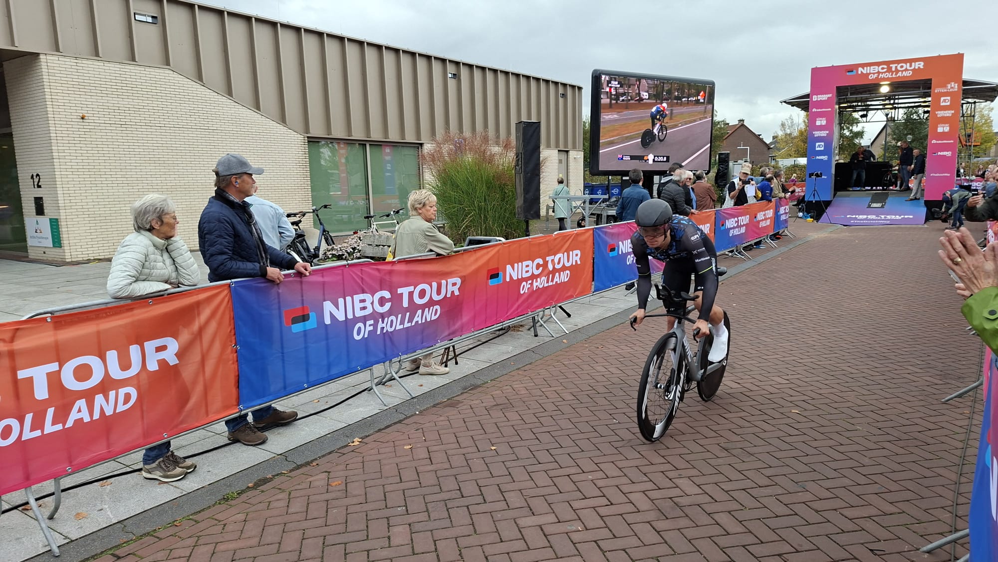 Het is een komen en gaan van mensen op de parkeerplaats voor zwembad De Banakker in Etten-Leur. Vanaf het startblok vertrekken daar de 109 deelnemers van de Tour of Holland voor hun tijdrit. Vijftien kilometer telt de race tegen de klok, waarbij de renners een rondje door het buitengebied van Etten-Leur maken. Onder hen begeven zich naast wereldtoppers als Tim Merlier en Olav Kooij ook enkele lokale helden, zoals Roan Konings.