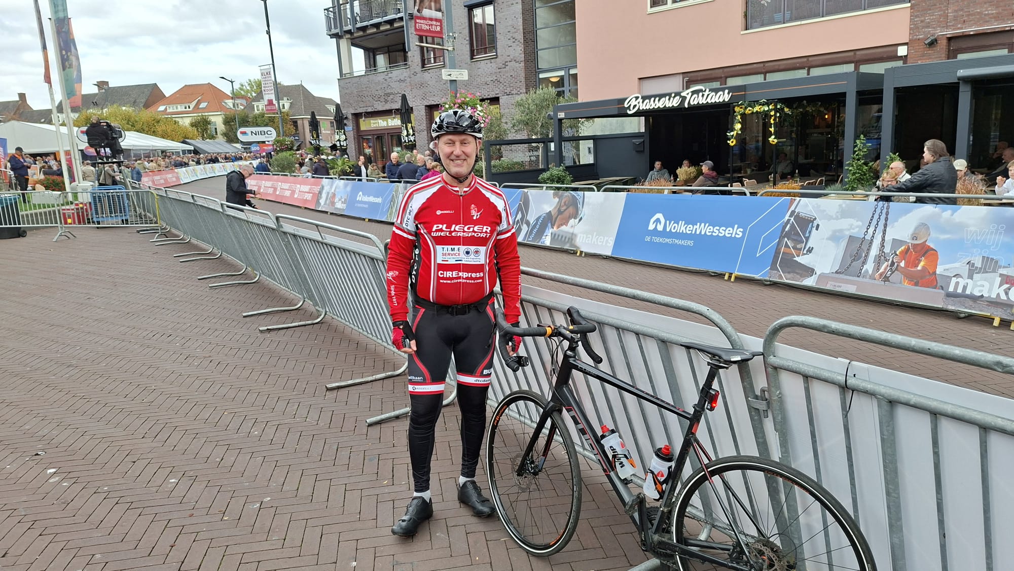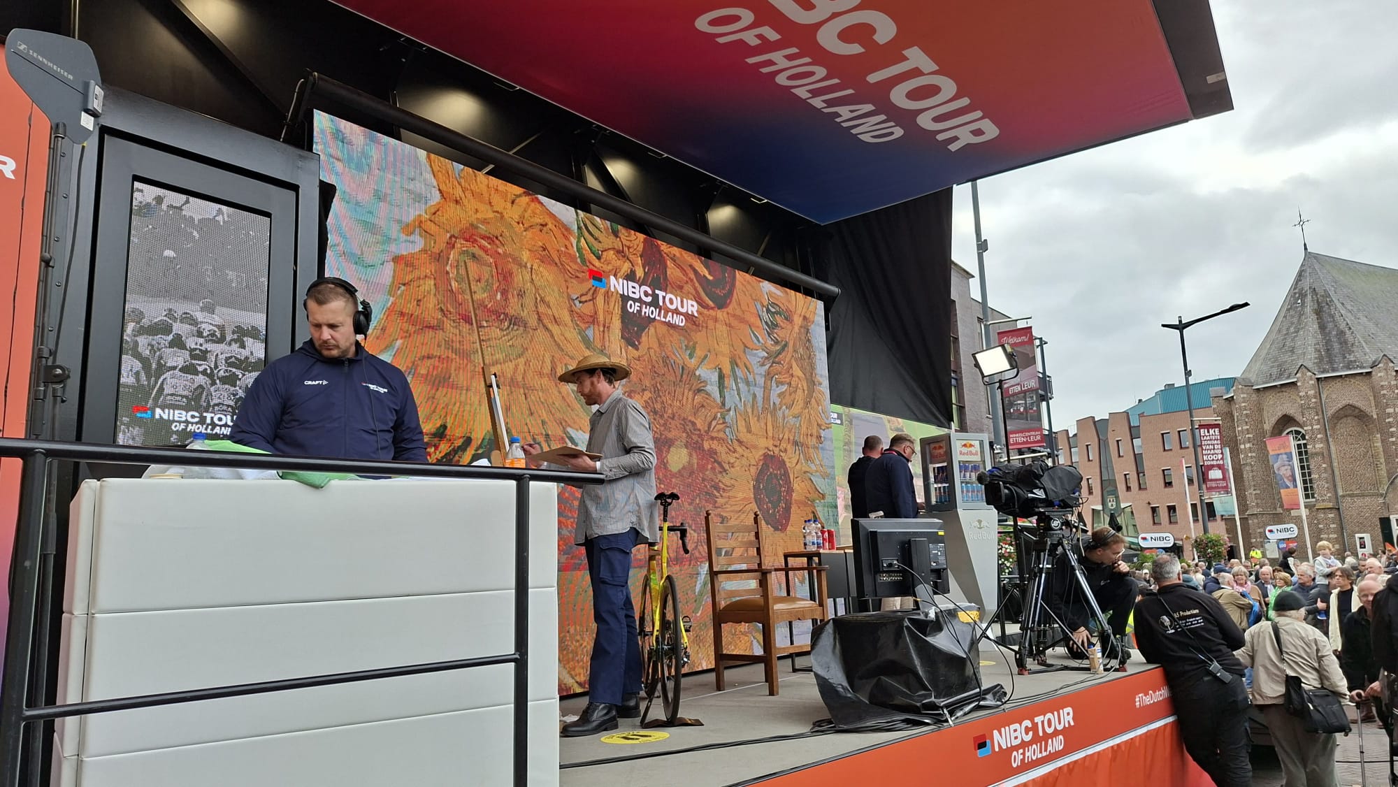 Niet alleen Jochim, maar ook andere wielerliefhebbers zijn naar Etten-Leur gekomen om een kijkje te komen nemen. Met name op de Markt, waar de renners over de streep komen, is er behoorlijk veel volk op de been en valt er genoeg te zien. Zo is er op het podium een look-a-like van Vincent van Gogh tijdens de koers een schilderij aan het maken, geheel in de stijl van de grootmeester. Tussen al die mensen bevindt zich ook Mario uit Dordrecht. Hij is deze ochtend al fietsend van zijn woonplaats naar Etten-Leur gekomen. “Gisteren was de koers in mijn stad. Het was zo leuk, dat ik dacht: ik fiets vandaag richting Etten-Leur om te gaan kijken.”