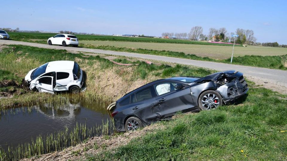 Twee auto’s botsen en belanden in sloot bij Poortvliet