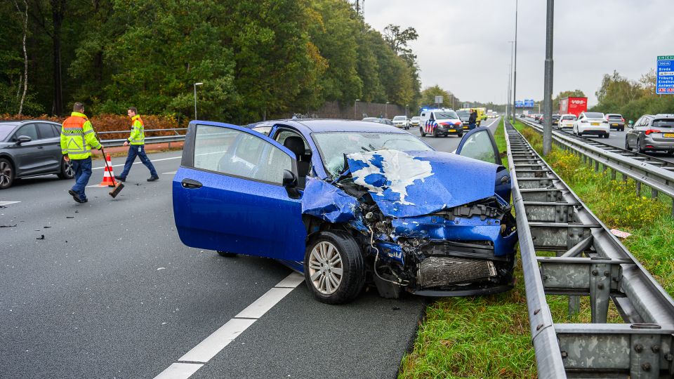 Het ongeluk gebeurde in de richting van Bergen op Zoom. Door de klap tegen de vangrail lag een deel van de weg bezaaid met brokstukken. Het is niet bekend of de inzittenden van de auto’s naar het ziekenhuis moesten.