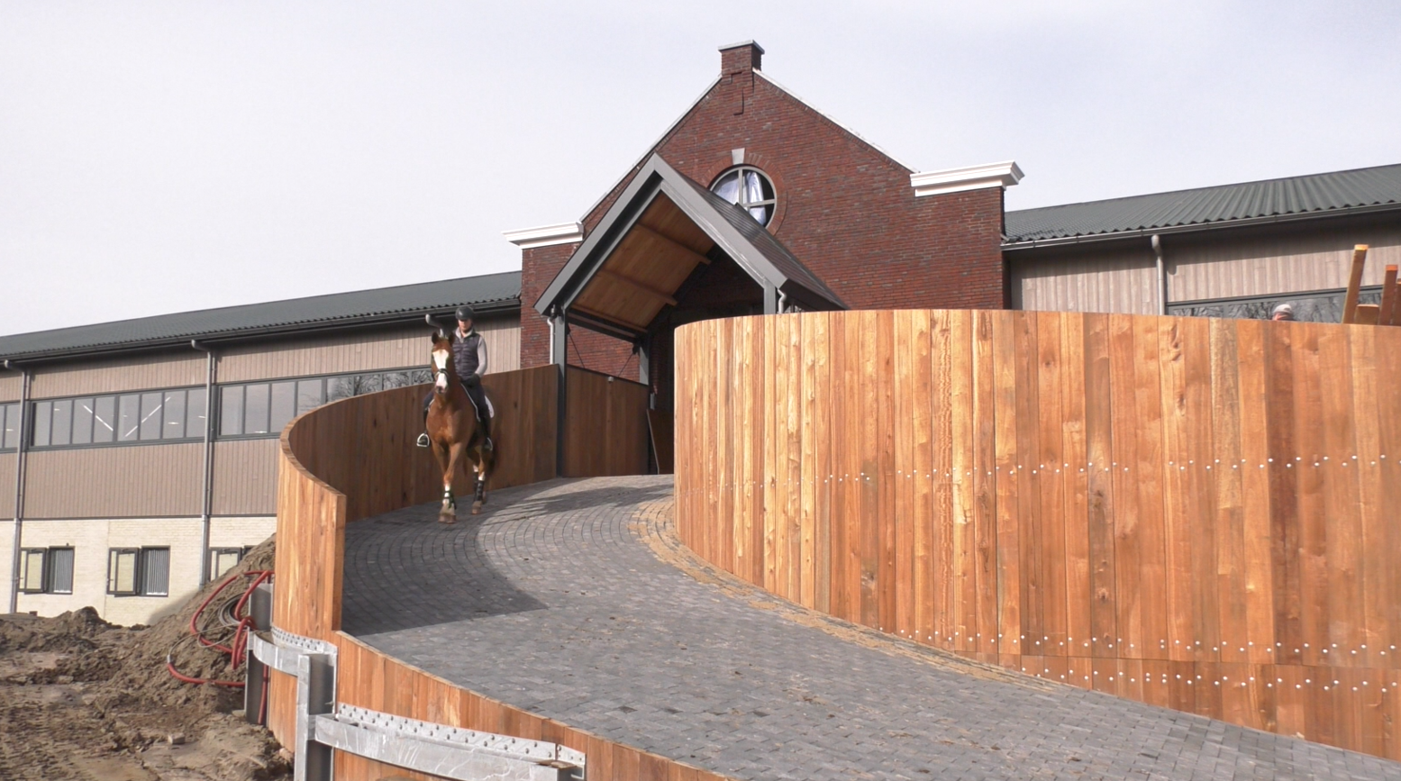 Een ander noemenswaardig onderdeel van het hippisch centrum is het equiduct: een paardenbrug. “Die hebben we gemaakt zodat we op een veilige manier onze paarden in de hoger gelegen rijhallen kunnen krijgen.” Hiervoor is veel onderzoek gedaan naar hoe steil de helling mag zijn en wat de veiligheidseisen zijn. Ook zijn er extra ruwe tegels gelegd zodat de paarden niet uit kunnen glijden. “De eerste paarden hebben er al gebruik van gemaakt, en dat gaat prima.”