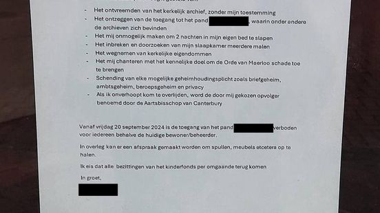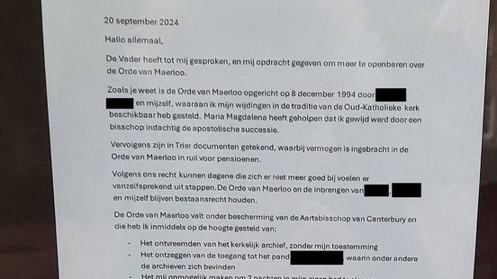 Volgens dorpsbewoners is er ook ruzie ontstaan in de sekte. Op het hoofdkwartier wordt in september 2024 een brief geplakt. De voormalig notaris ontzegt iedereen de toegang tot het pand. Uit naam van de Orde van Maerloo. Er staan stevige beschuldigingen in, over inbraken en het wegnemen van kerkelijke eigendommen en het archief.