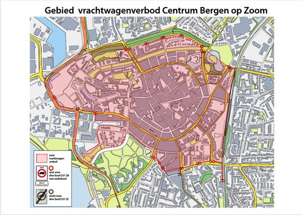 Het centrum van Bergen op Zoom is vanaf 12 juni niet toegankelijk meer voor vrachtverkeer. Vrachtwagens kunnen de bedrijventerreinen bereiken via Randweg Noord en West. Alleen vrachtwagens die winkels en bedrijven bevoorraden kunnen door de binnenstad.
