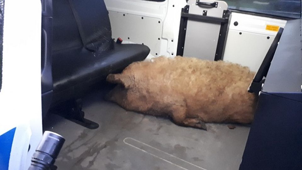 Samen hebben de automobilisten en de agenten het varken in de politiewagen weten te zetten. De politie heeft het dier afgezet bij een manege in de buurt. Volgens regionale media heeft de eigenaar het varken daar al weer opgehaald.