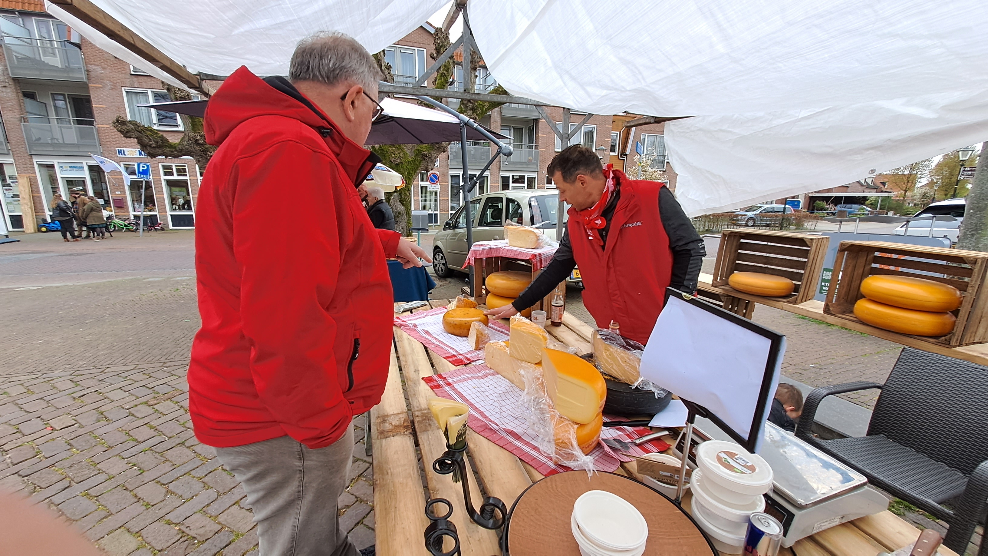 Peter Geers kijkt zondagochtend tevreden om zich heen terwijl hij over de markt loopt. “We vinden het belangrijk dat iedereen heerlijke gezonde producten kan kopen voor zo min mogelijk geld”, zegt hij. “Iedereen weet hoe duur het in de supermarkt is, hier koop je het rechtstreeks van producent”, zegt Geers terwijl hij naar de kaasspecialist uit Bergen op Zoom wijst. Verderop verkoopt boerderijwinkel Pijnen asperges uit de streek.