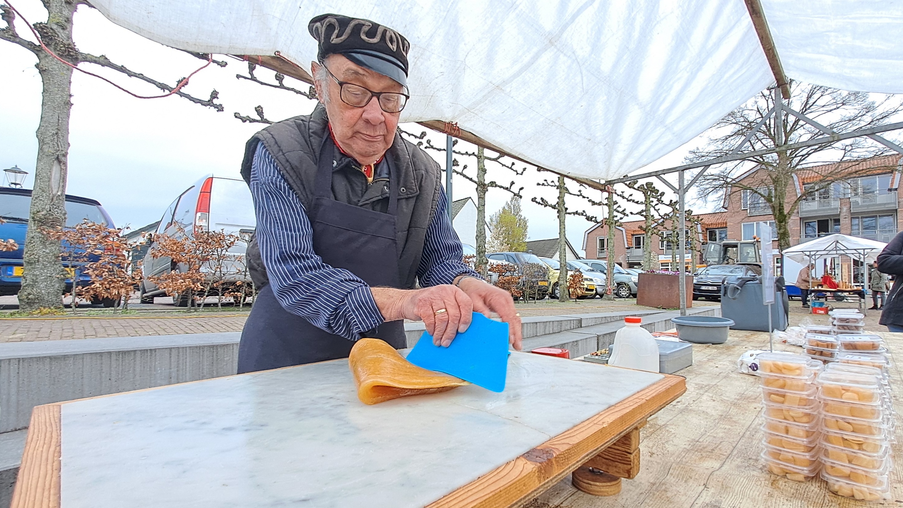 De organisatie had gehoopt op een breder aanbod, maar mede in verband met de Ramadan, het koude voorjaar en de hoge energieprijzen, laat dat nog even op zich wachten. “We zijn eigenlijk een week te vroeg”, merkt Geers op. Voor een bak koffie en wat lekker is het daarentegen nooit te vroeg, bleek wel uit de kraam die broodjes ei en vlees verkoopt en een kraam met Indische specialiteiten. Voor de zoetekauwen is Adri van Poeijer uit Middelburg gekomen. Hij maakt ter plekke Zeeuwse babbelaars.