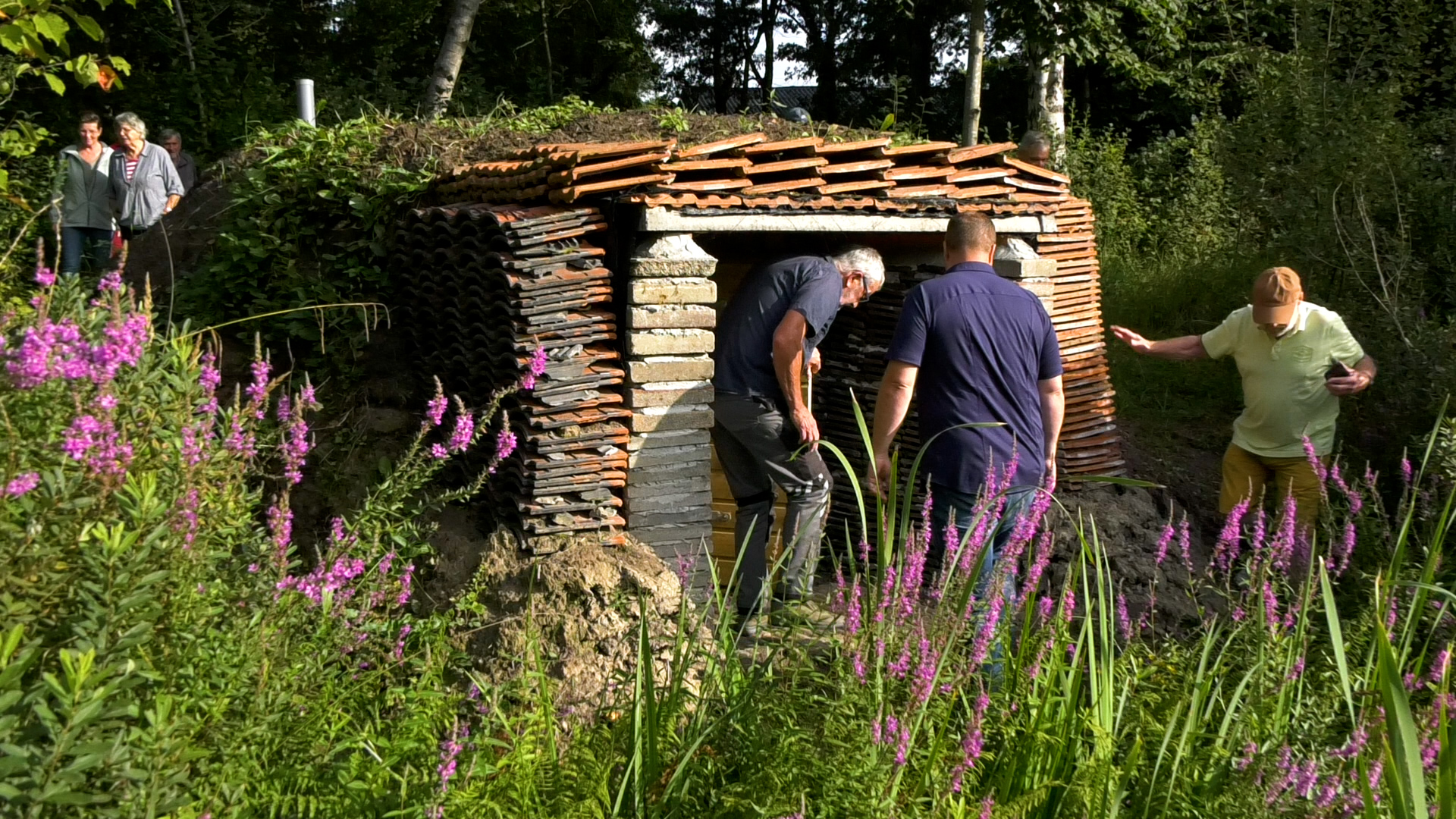 Al langer had de stichting de wens om een vleermuisgrot aan haar Heemtuin toe te voegen, maar geld voor materialen speelde een rol. “Tot dat we aan het begin van het jaar dakpannen en stalroosters kregen aangeboden.” Met deze materialen konden de vrijwilligers aan de slag. “We zijn een plek gaan zoeken bij de vijver en zijn begonnen met bouwen.”