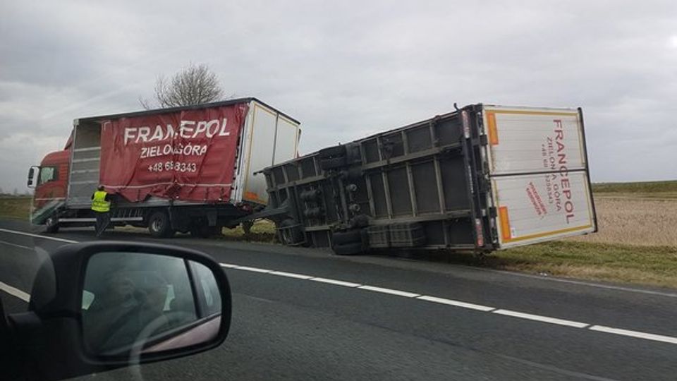 Op de A4 bij Ossendrecht is donderdagmiddag rond 16.15 uur de aanhanger van een vrachtwagen gekanteld als gevolg van de harde wind.
