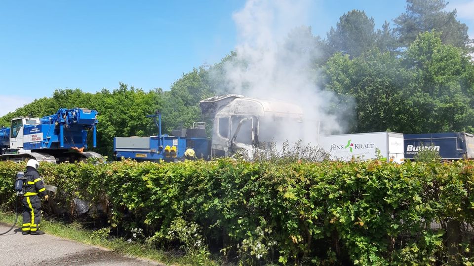 Rond half drie vatte de trekker door onbekende oorzaak vlam op de A4 in de richting van Antwerpen-Vlissingen. De brandweer rukte met meerdere voertuigen uit om de brand te blussen. Naast de vrachtwagen vloog ook de droge berm in brand. De brandweerlieden wisten te voorkomen dat de hijskraan op de dieplader ook door de vlammen gegrepen werd.