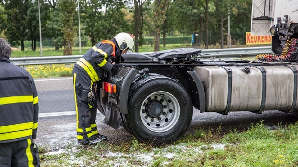 De brand zou ontstaan zijn door een vastgelopen rem. De vrachtwagenchauffeur kon op tijd stoppen op de vluchtstrook en zijn trailer ontkoppelen. Met behulp van omstanders is de brand met brandblussers geblust.