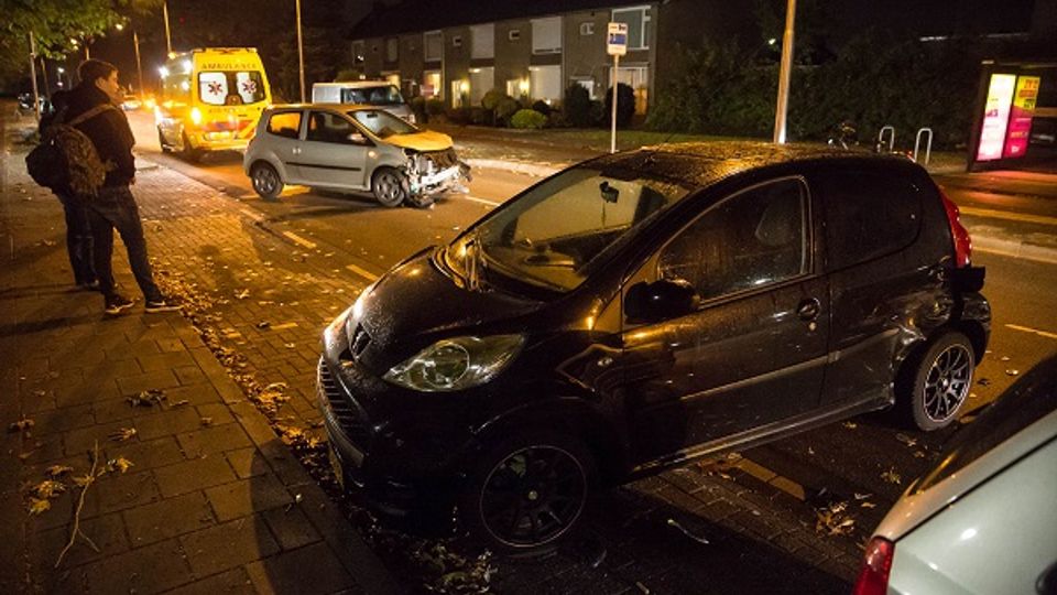 Eén van de auto’s is gaan tollen en is tegen een derde auto gebotst. Deze stond geparkeerd langs de weg.