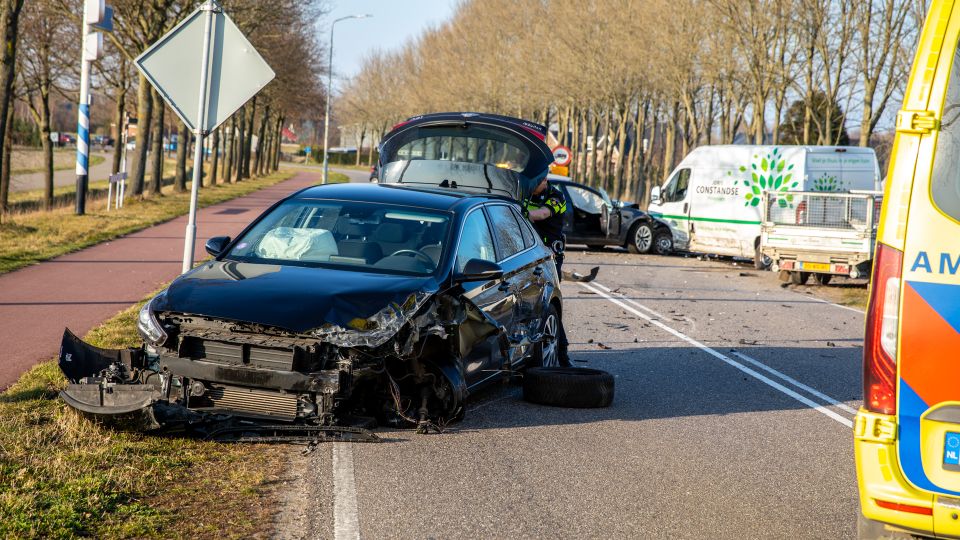 Bij het ongeval kwamen een bestelbus en twee auto’s met elkaar in botsing. De bestuurster van één van de auto’s raakte gewond en is met een ambulance naar het ziekenhuis gebracht.