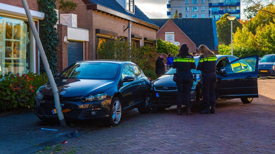 Door de klap kwam de geparkeerde auto tegen een lantaarnpaal erachter terecht. Die raakte daardoor beschadigd. Beide auto’s liepen flinke schade op door de botsing.
